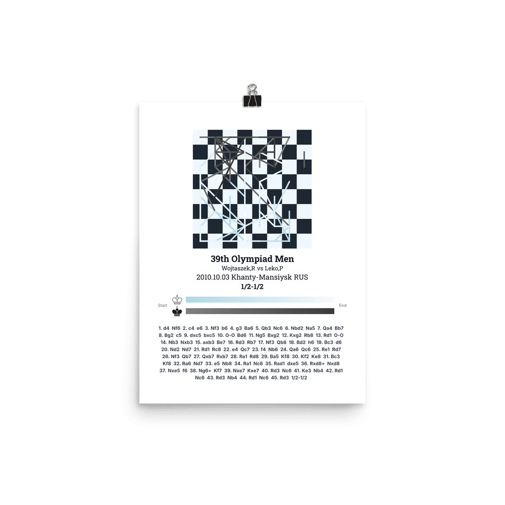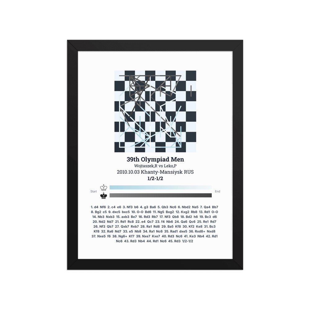 Museum-quality poster on thick, durable matte paper. A sharp, clean look for any chess visualisation.