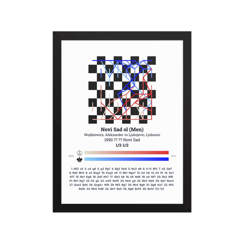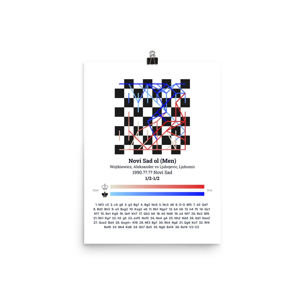 Museum-quality poster on thick, durable matte paper. A sharp, clean look for any chess visualisation.