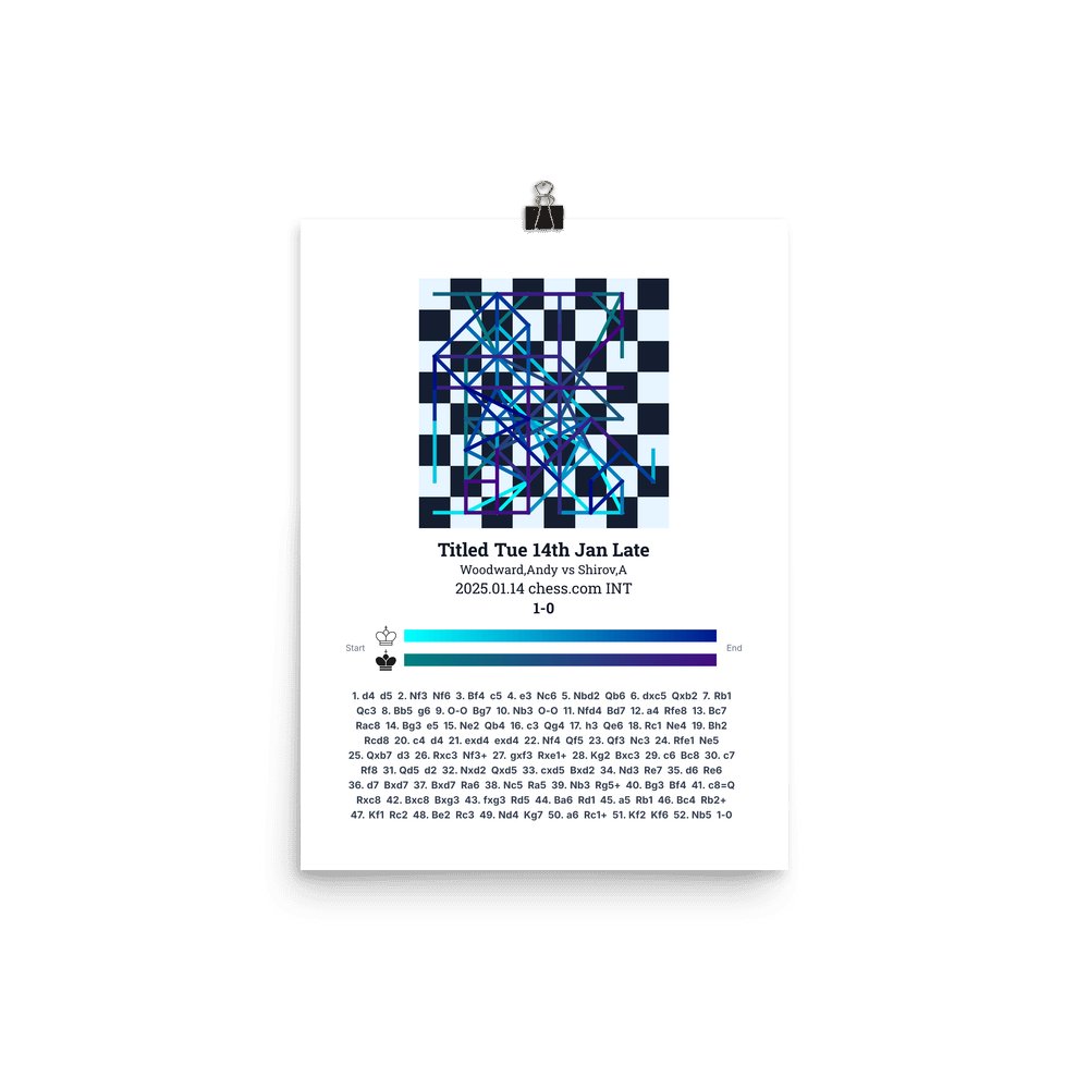 Museum-quality poster on thick, durable matte paper. A sharp, clean look for any chess visualisation.