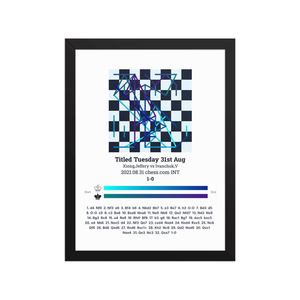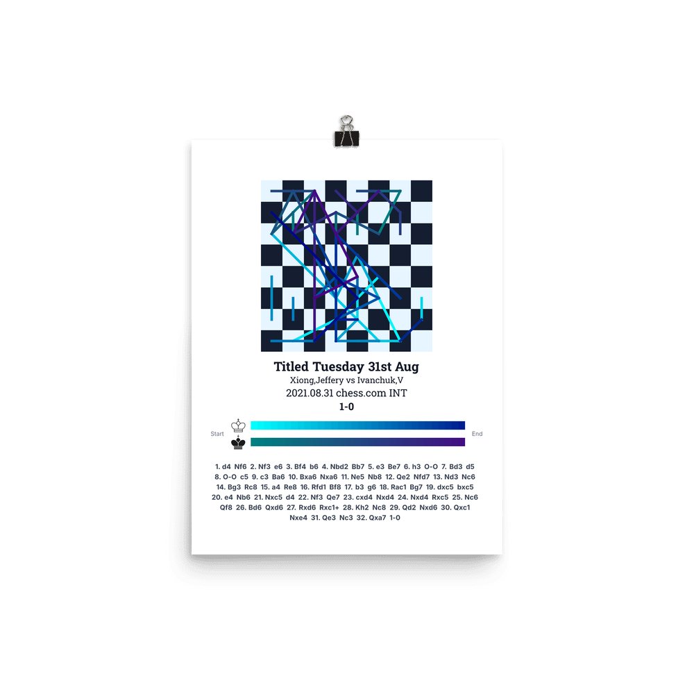 Museum-quality poster on thick, durable matte paper. A sharp, clean look for any chess visualisation.