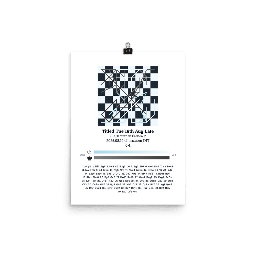 Museum-quality poster on thick, durable matte paper. A sharp, clean look for any chess visualisation.