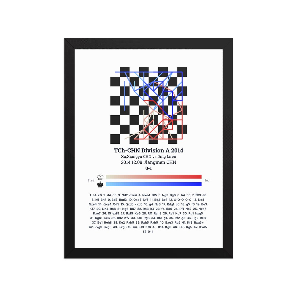 Museum-quality poster on thick, durable matte paper. A sharp, clean look for any chess visualisation.