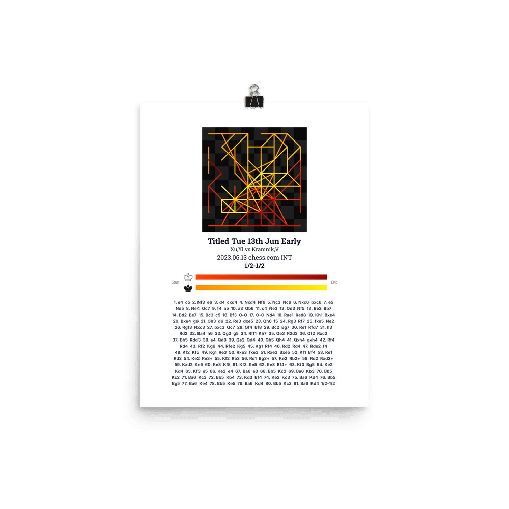 Museum-quality poster on thick, durable matte paper. A sharp, clean look for any chess visualisation.