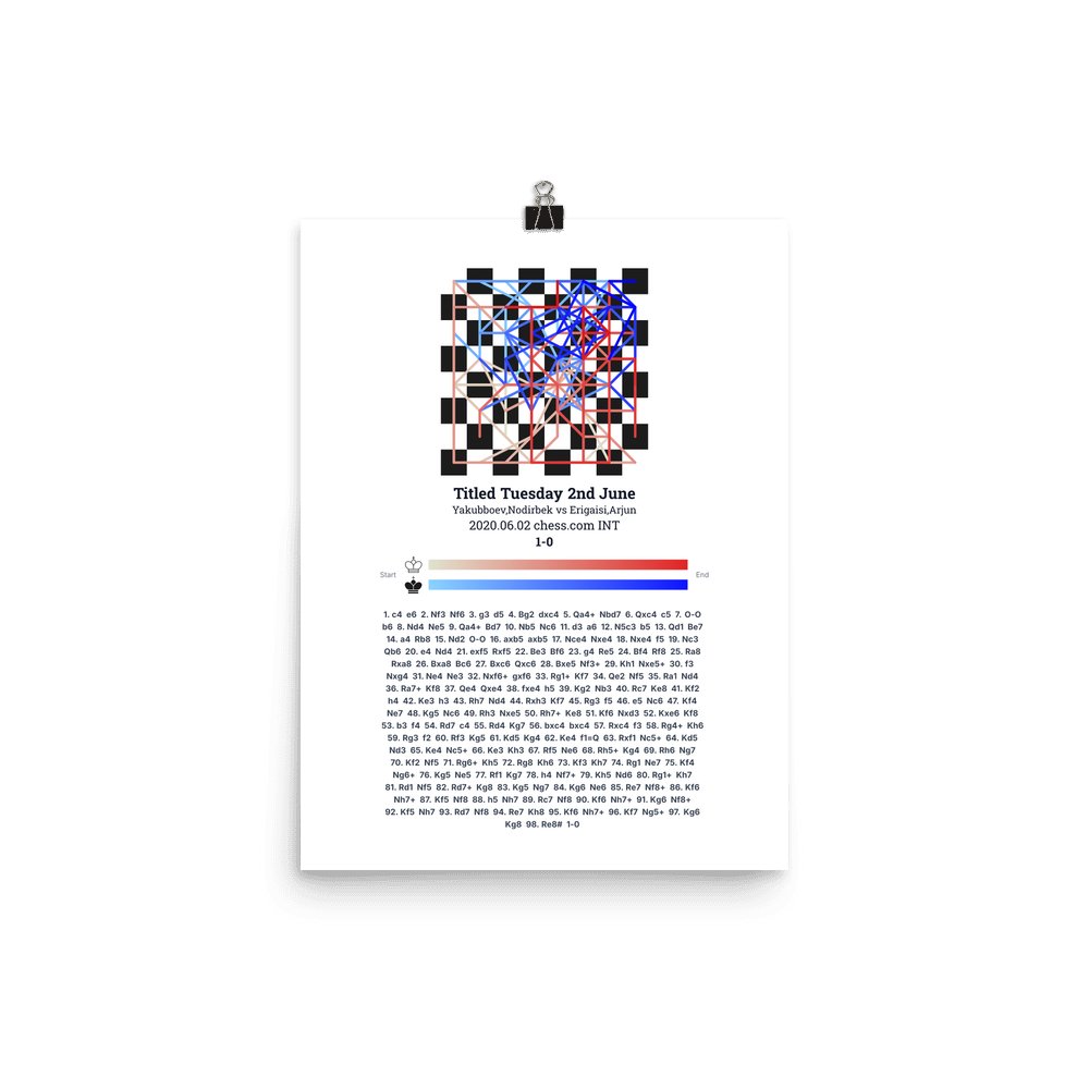 Museum-quality poster on thick, durable matte paper. A sharp, clean look for any chess visualisation.