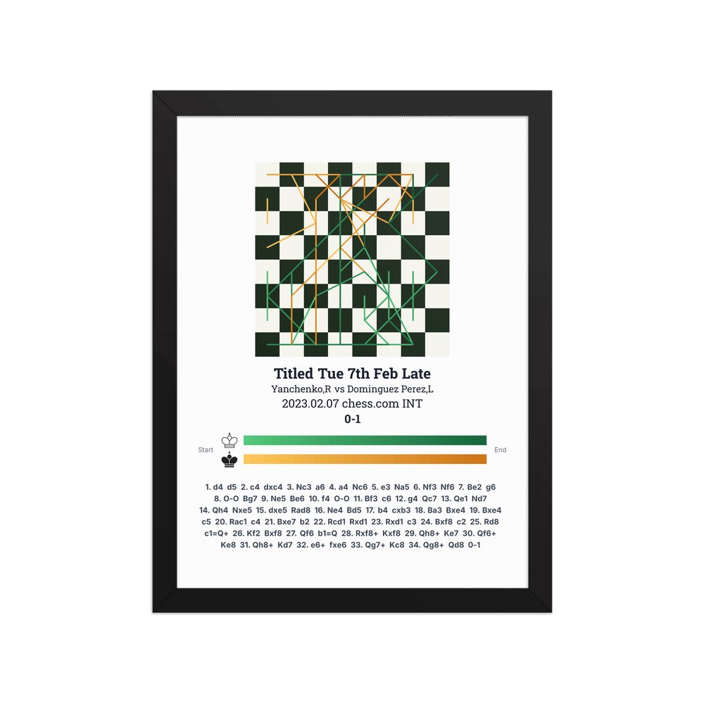 Museum-quality poster on thick, durable matte paper. A sharp, clean look for any chess visualisation.