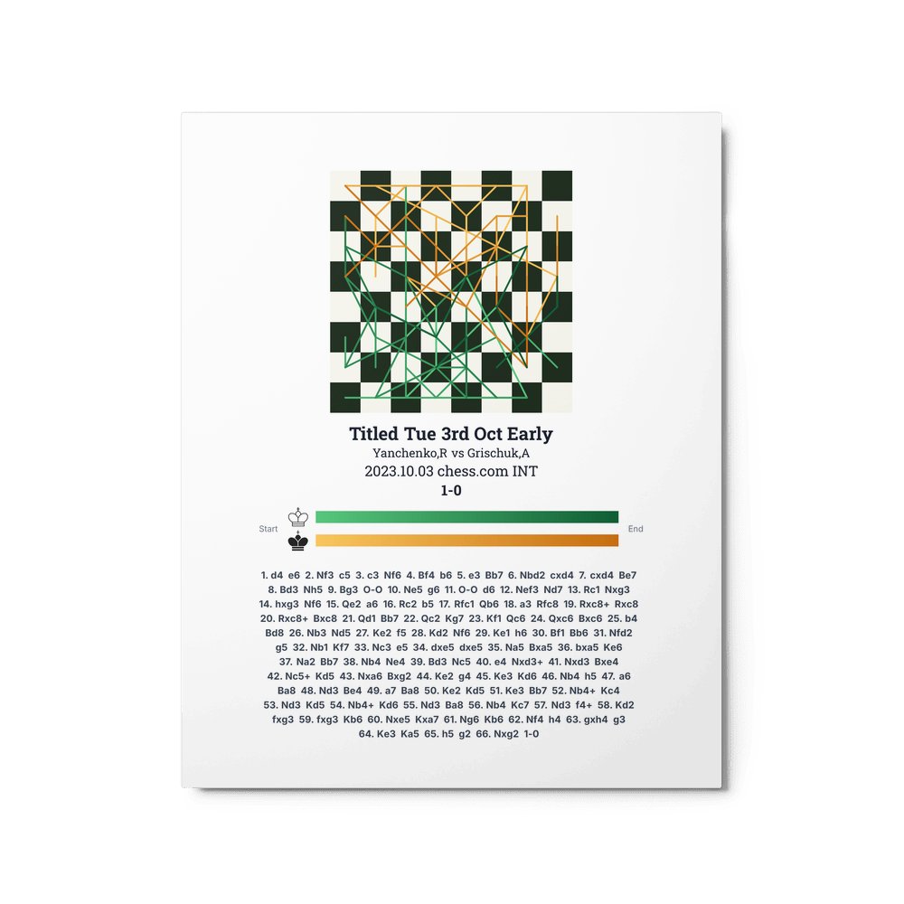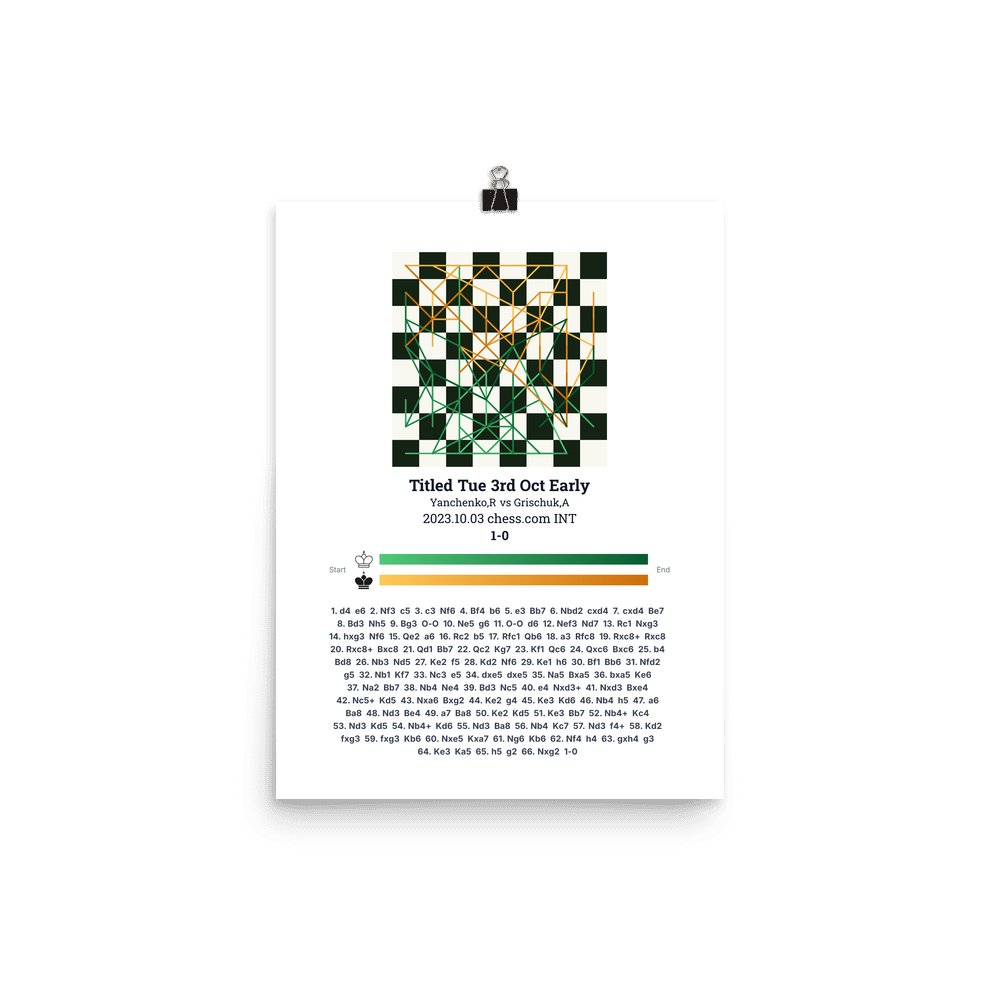 Museum-quality poster on thick, durable matte paper. A sharp, clean look for any chess visualisation.
