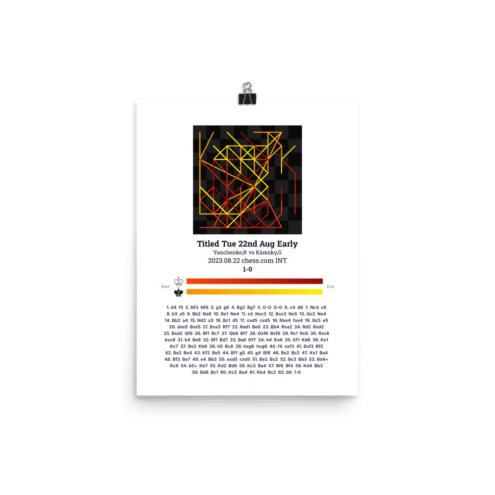 Museum-quality poster on thick, durable matte paper. A sharp, clean look for any chess visualisation.
