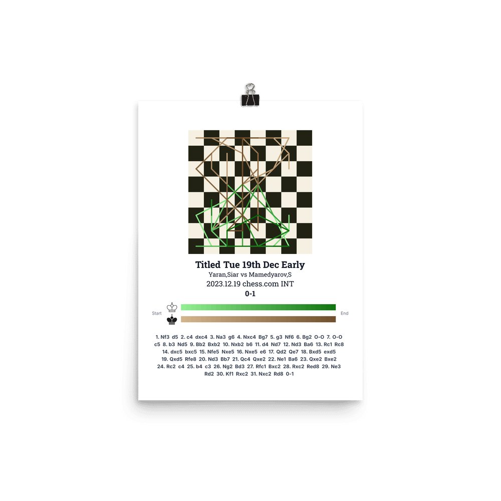 Museum-quality poster on thick, durable matte paper. A sharp, clean look for any chess visualisation.