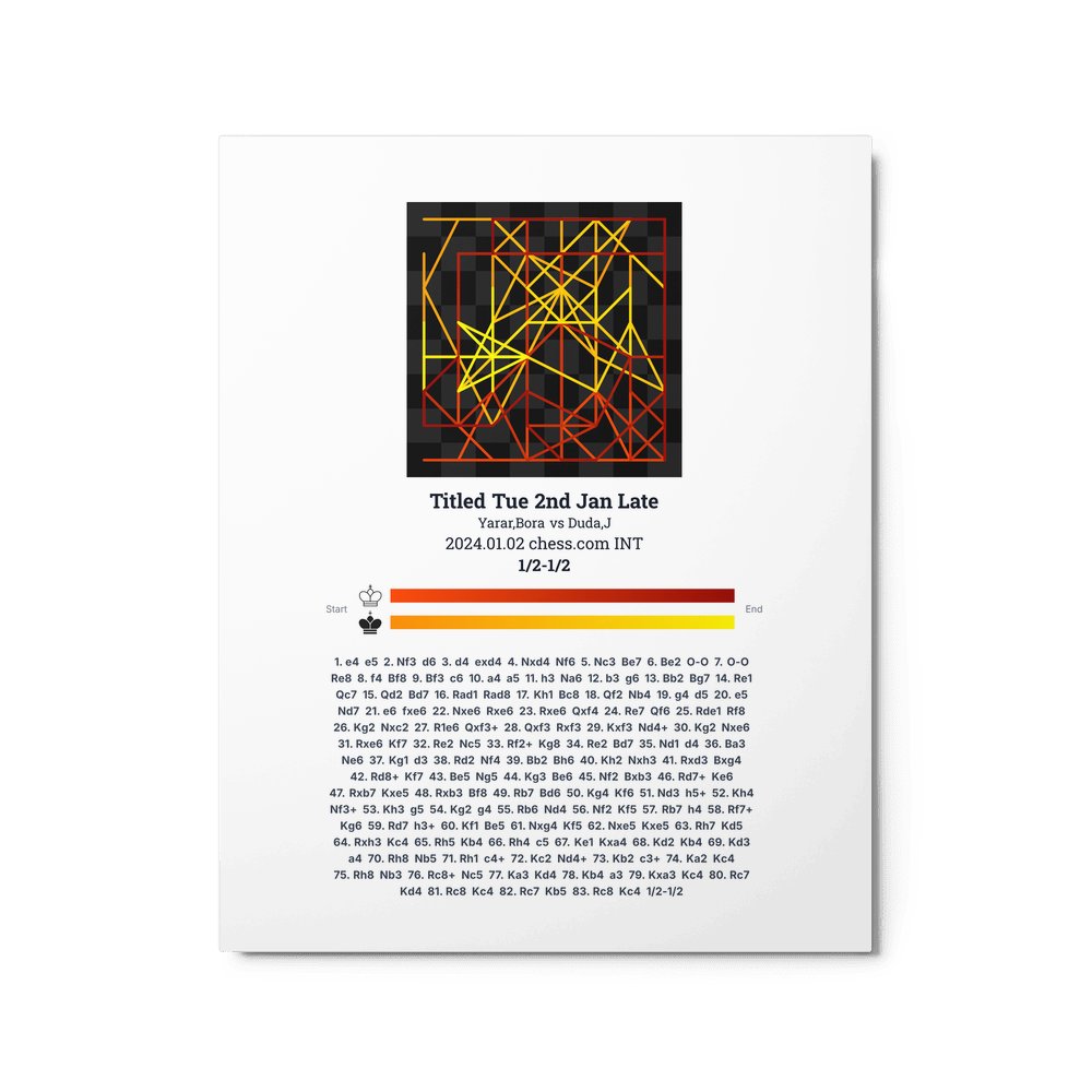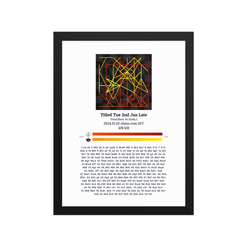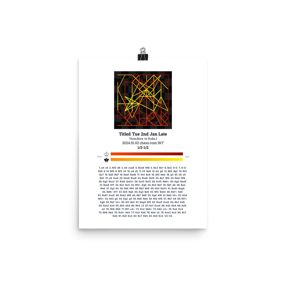 Museum-quality poster on thick, durable matte paper. A sharp, clean look for any chess visualisation.