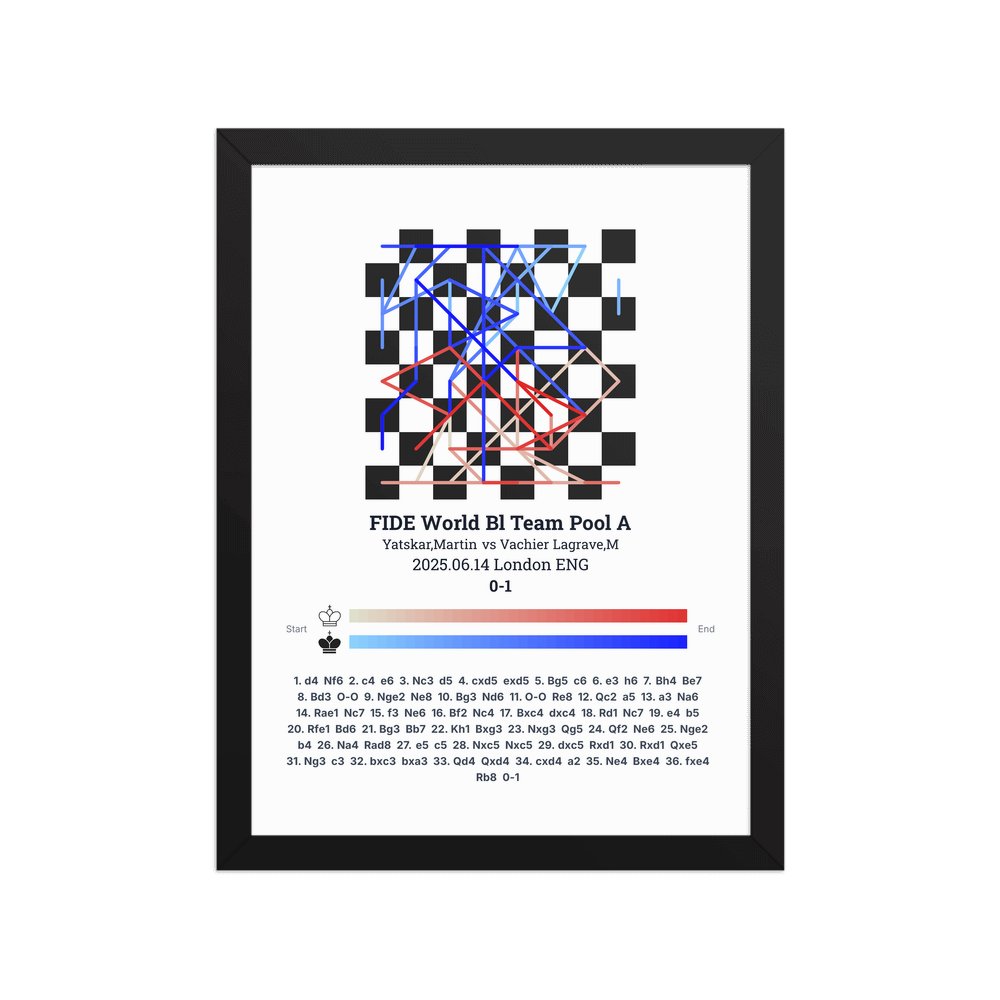 Museum-quality poster on thick, durable matte paper. A sharp, clean look for any chess visualisation.