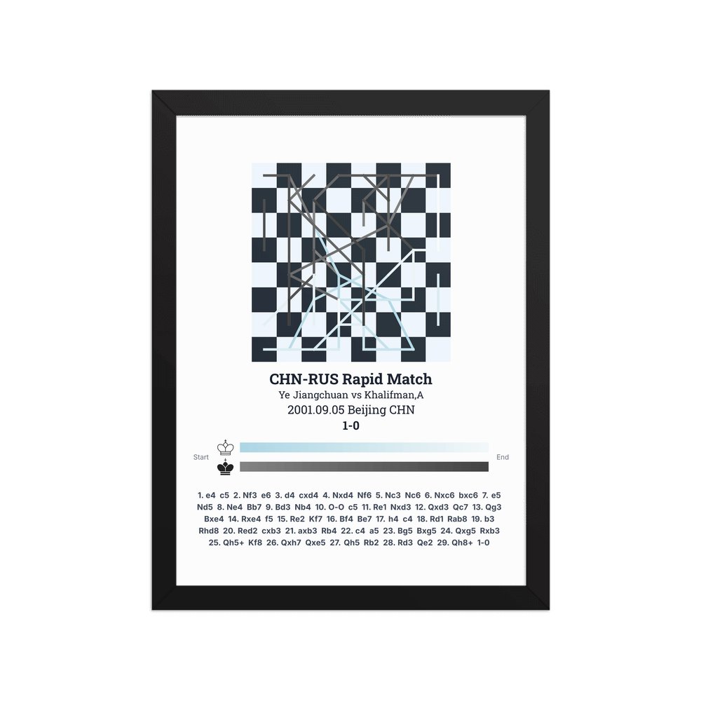 Museum-quality poster on thick, durable matte paper. A sharp, clean look for any chess visualisation.