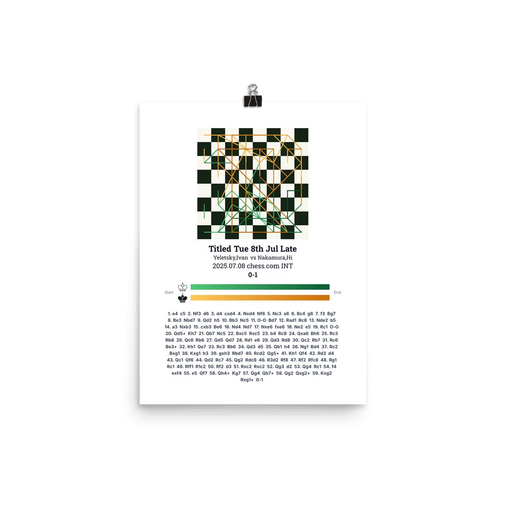 Museum-quality poster on thick, durable matte paper. A sharp, clean look for any chess visualisation.