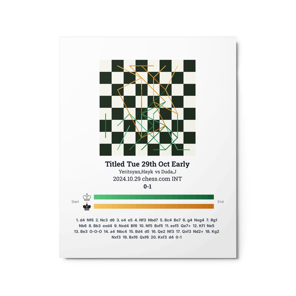 Museum-quality poster on thick, durable matte paper. A sharp, clean look for any chess visualisation.