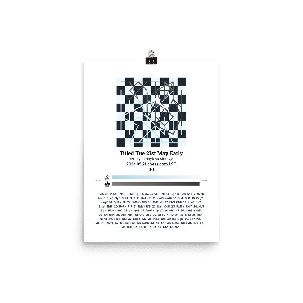 Museum-quality poster on thick, durable matte paper. A sharp, clean look for any chess visualisation.