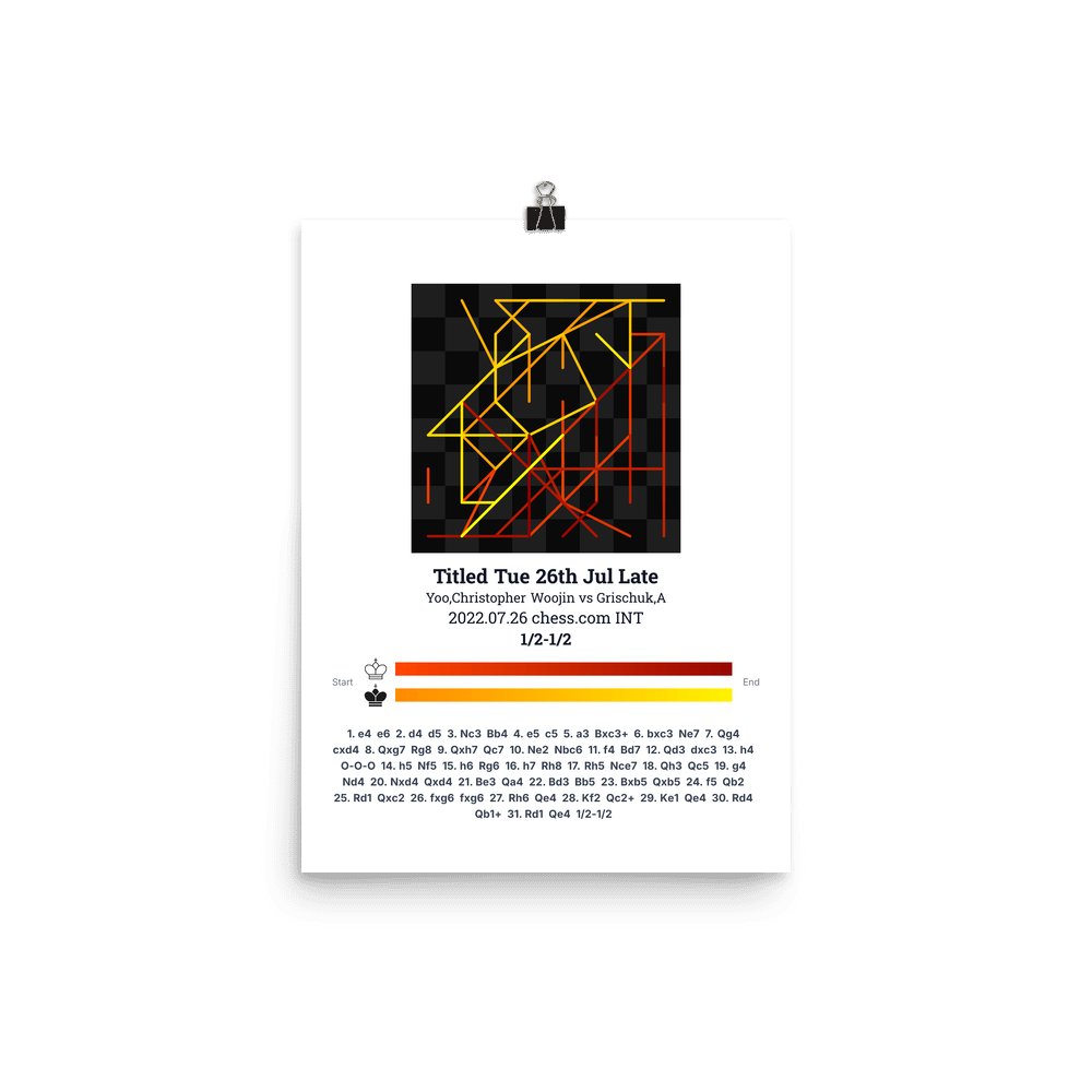 Museum-quality poster on thick, durable matte paper. A sharp, clean look for any chess visualisation.