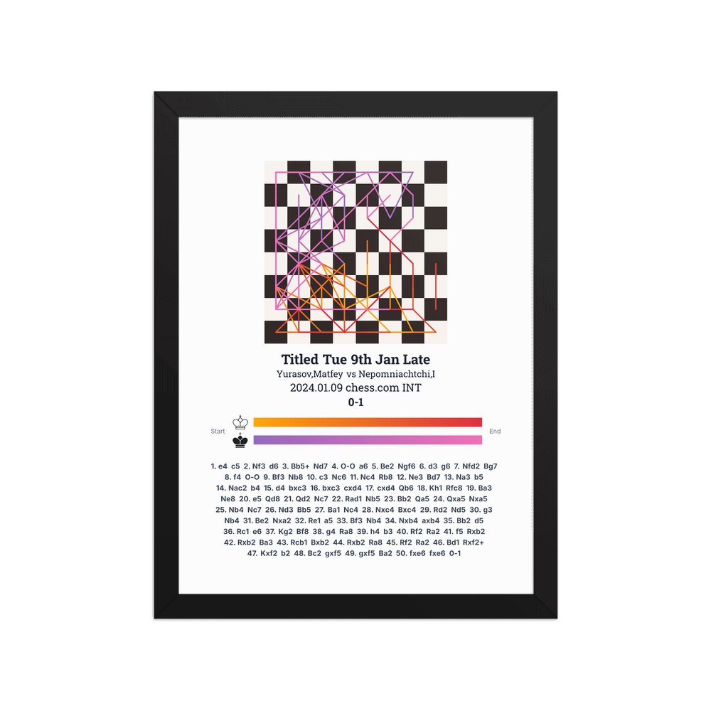 Museum-quality poster on thick, durable matte paper. A sharp, clean look for any chess visualisation.