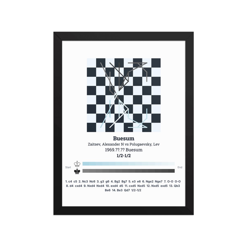 Museum-quality poster on thick, durable matte paper. A sharp, clean look for any chess visualisation.