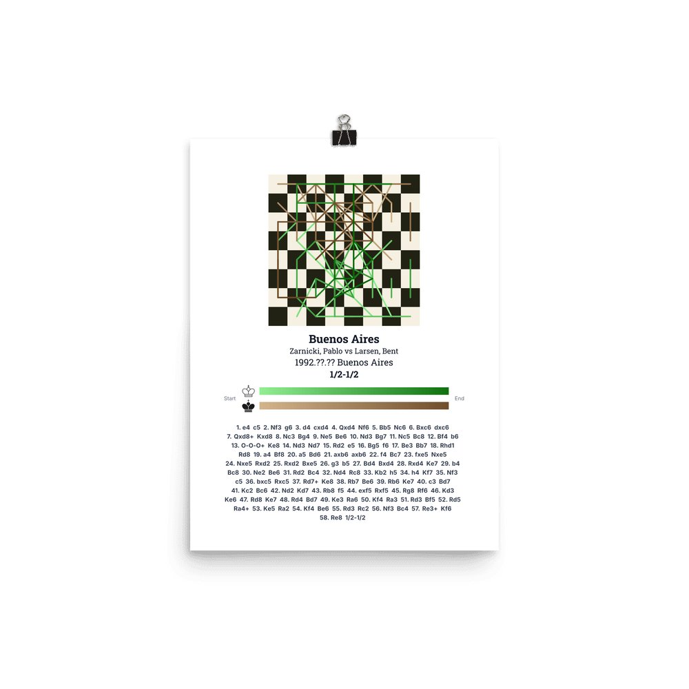 Museum-quality poster on thick, durable matte paper. A sharp, clean look for any chess visualisation.