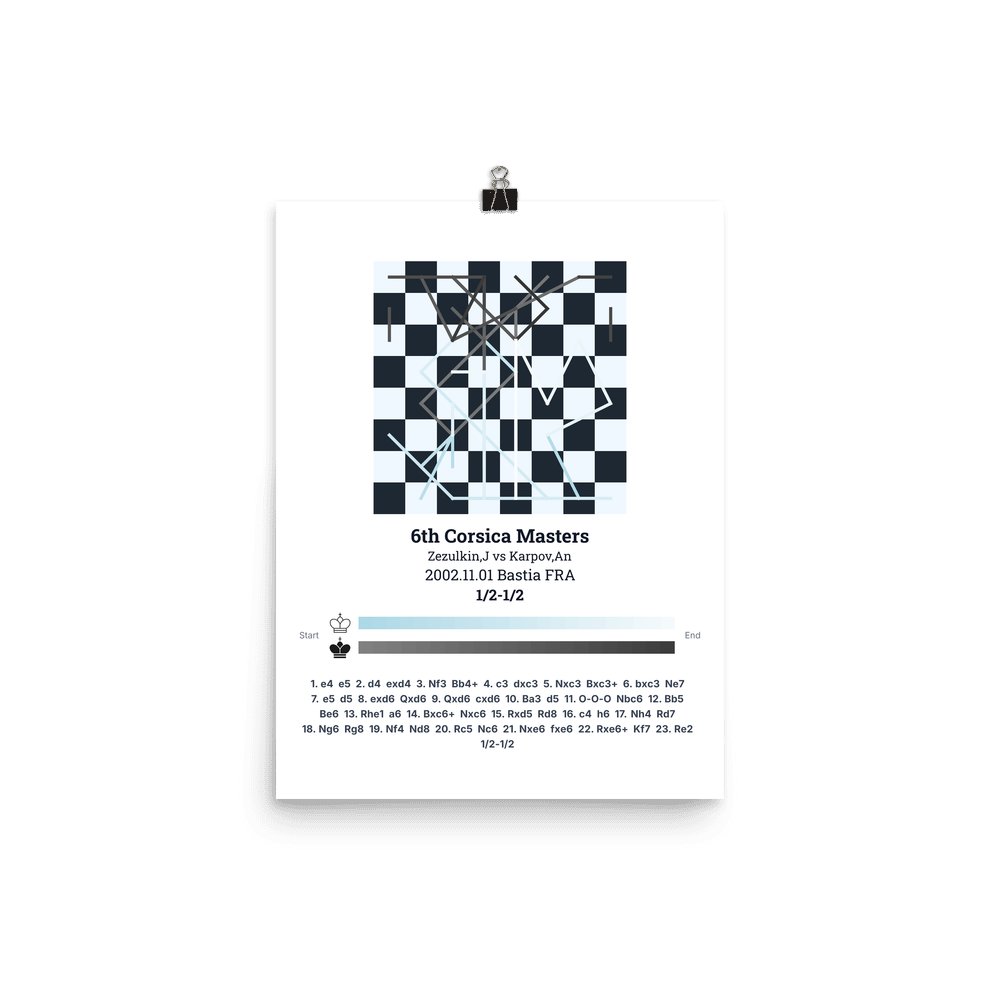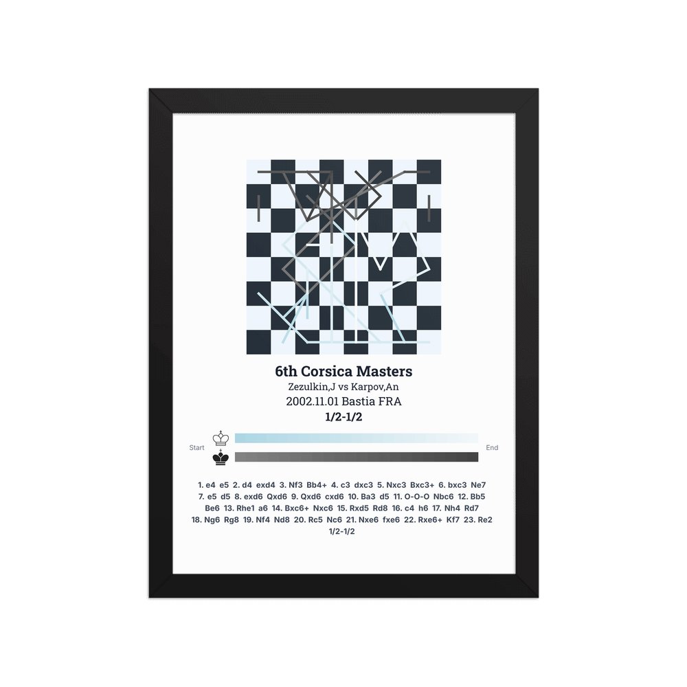 Museum-quality poster on thick, durable matte paper. A sharp, clean look for any chess visualisation.