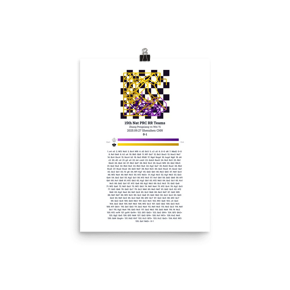 Museum-quality poster on thick, durable matte paper. A sharp, clean look for any chess visualisation.