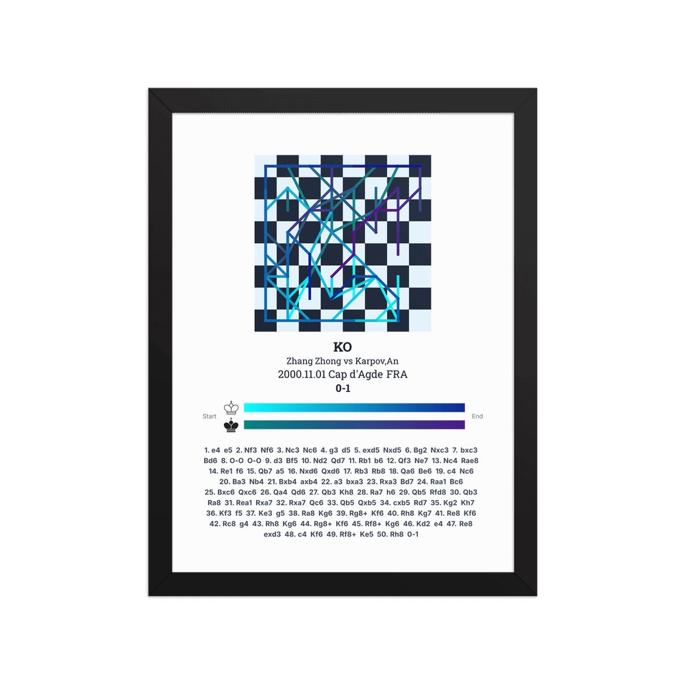 Museum-quality poster on thick, durable matte paper. A sharp, clean look for any chess visualisation.
