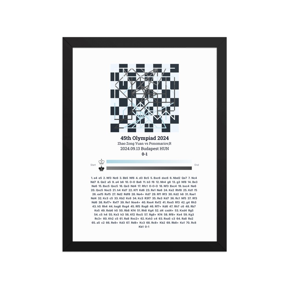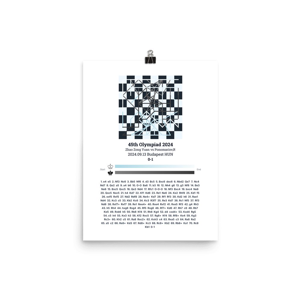 Museum-quality poster on thick, durable matte paper. A sharp, clean look for any chess visualisation.