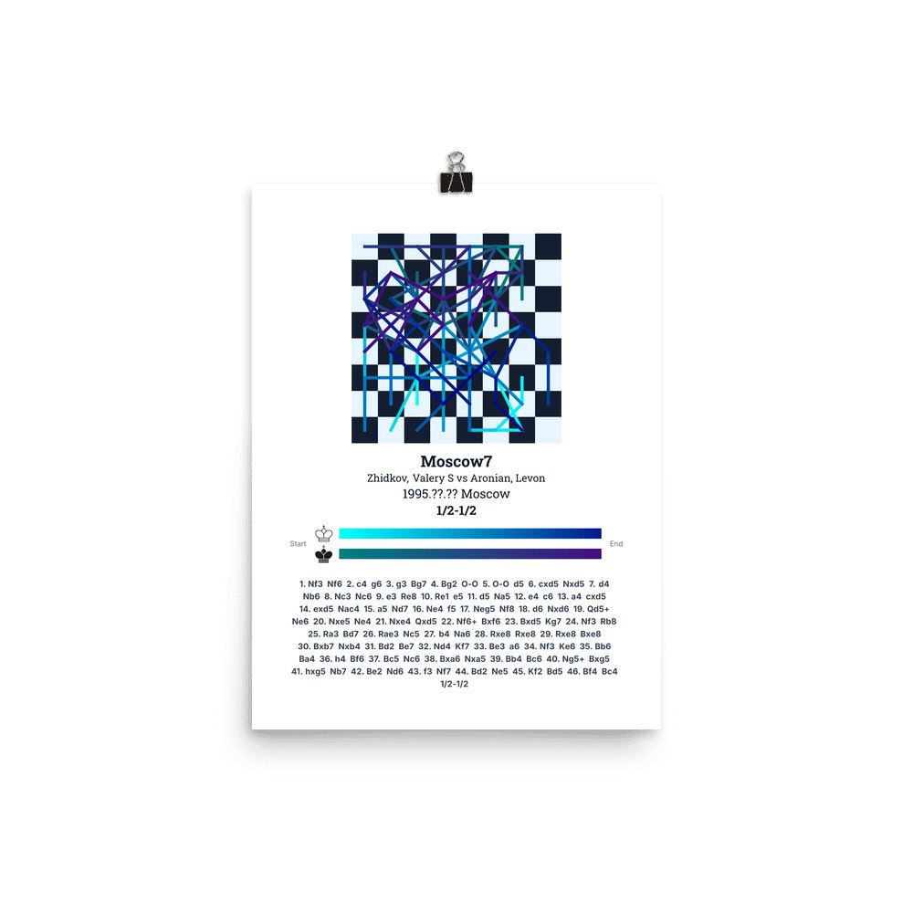 Museum-quality poster on thick, durable matte paper. A sharp, clean look for any chess visualisation.
