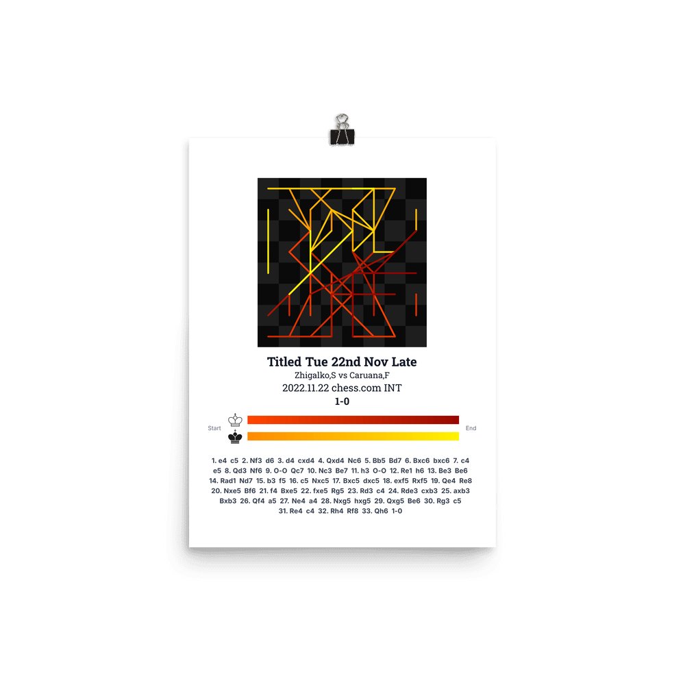 Museum-quality poster on thick, durable matte paper. A sharp, clean look for any chess visualisation.
