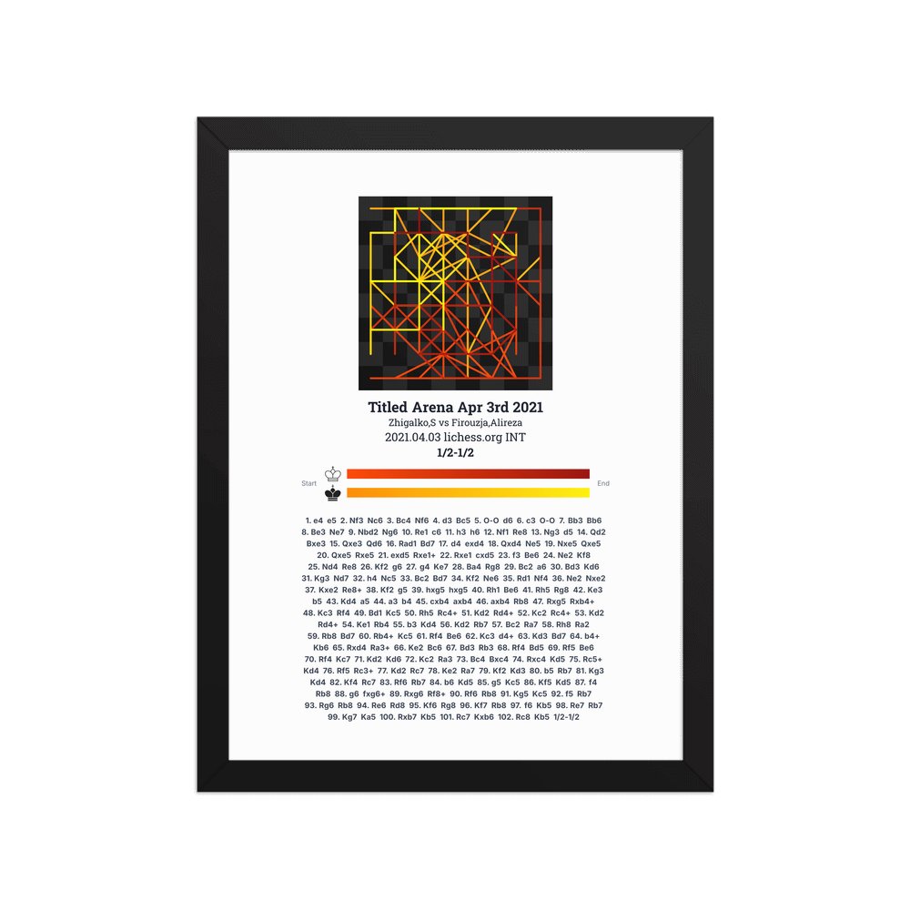 Museum-quality poster on thick, durable matte paper. A sharp, clean look for any chess visualisation.
