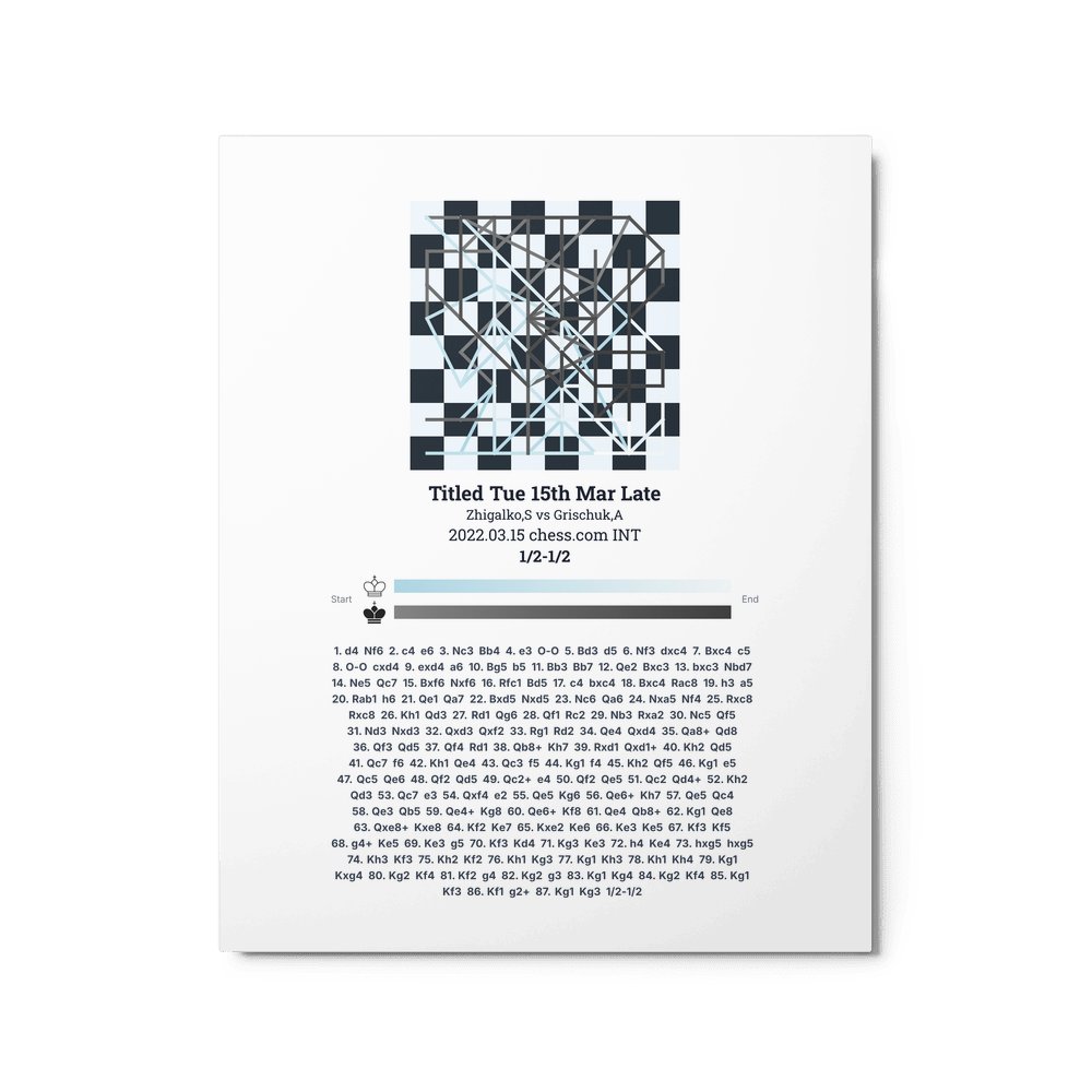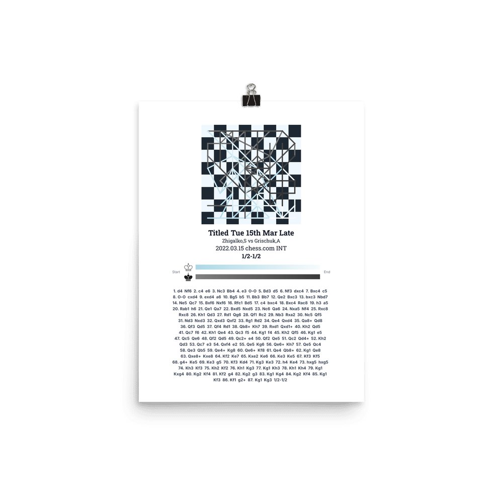 Museum-quality poster on thick, durable matte paper. A sharp, clean look for any chess visualisation.