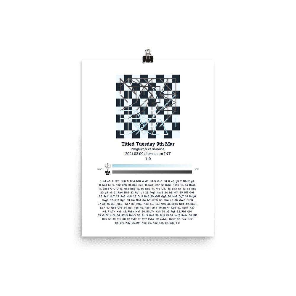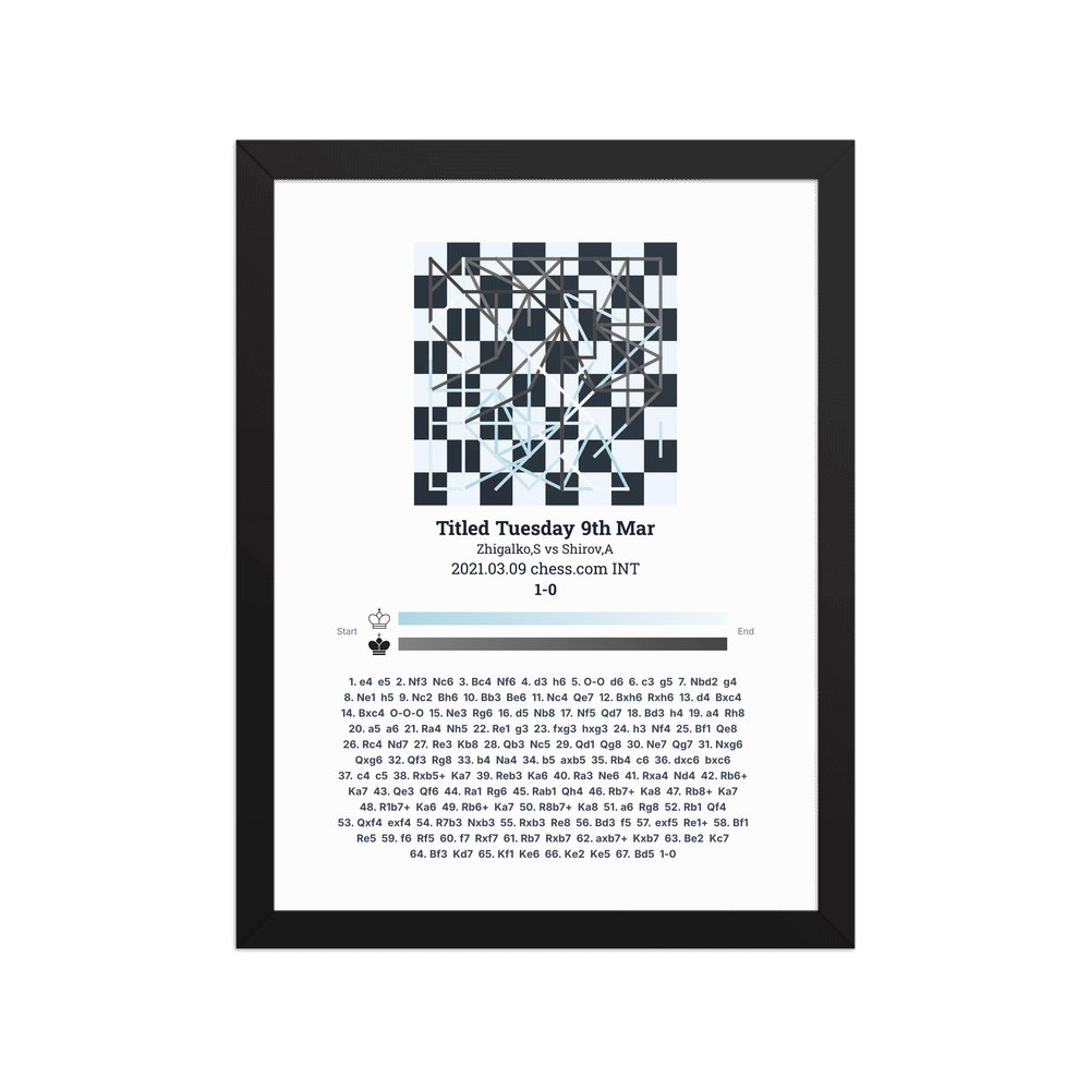 Museum-quality poster on thick, durable matte paper. A sharp, clean look for any chess visualisation.
