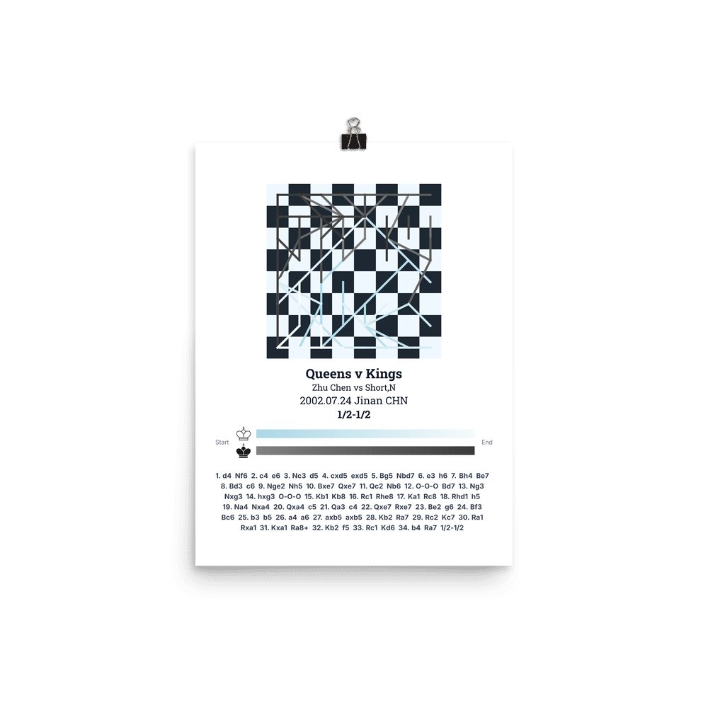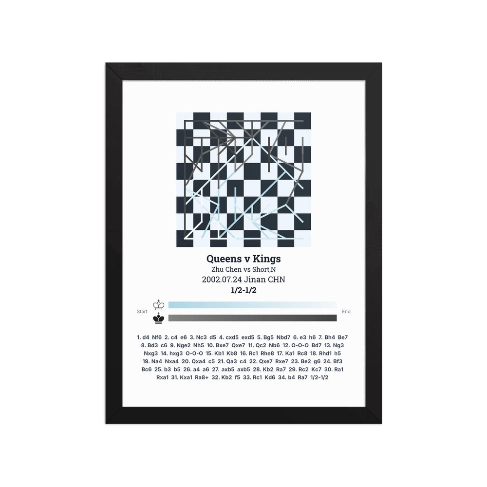 Museum-quality poster on thick, durable matte paper. A sharp, clean look for any chess visualisation.