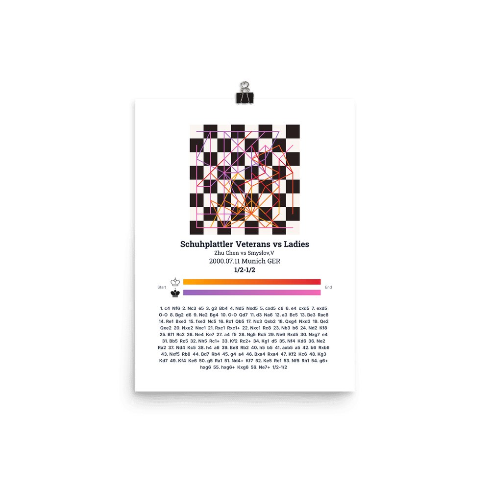 Museum-quality poster on thick, durable matte paper. A sharp, clean look for any chess visualisation.