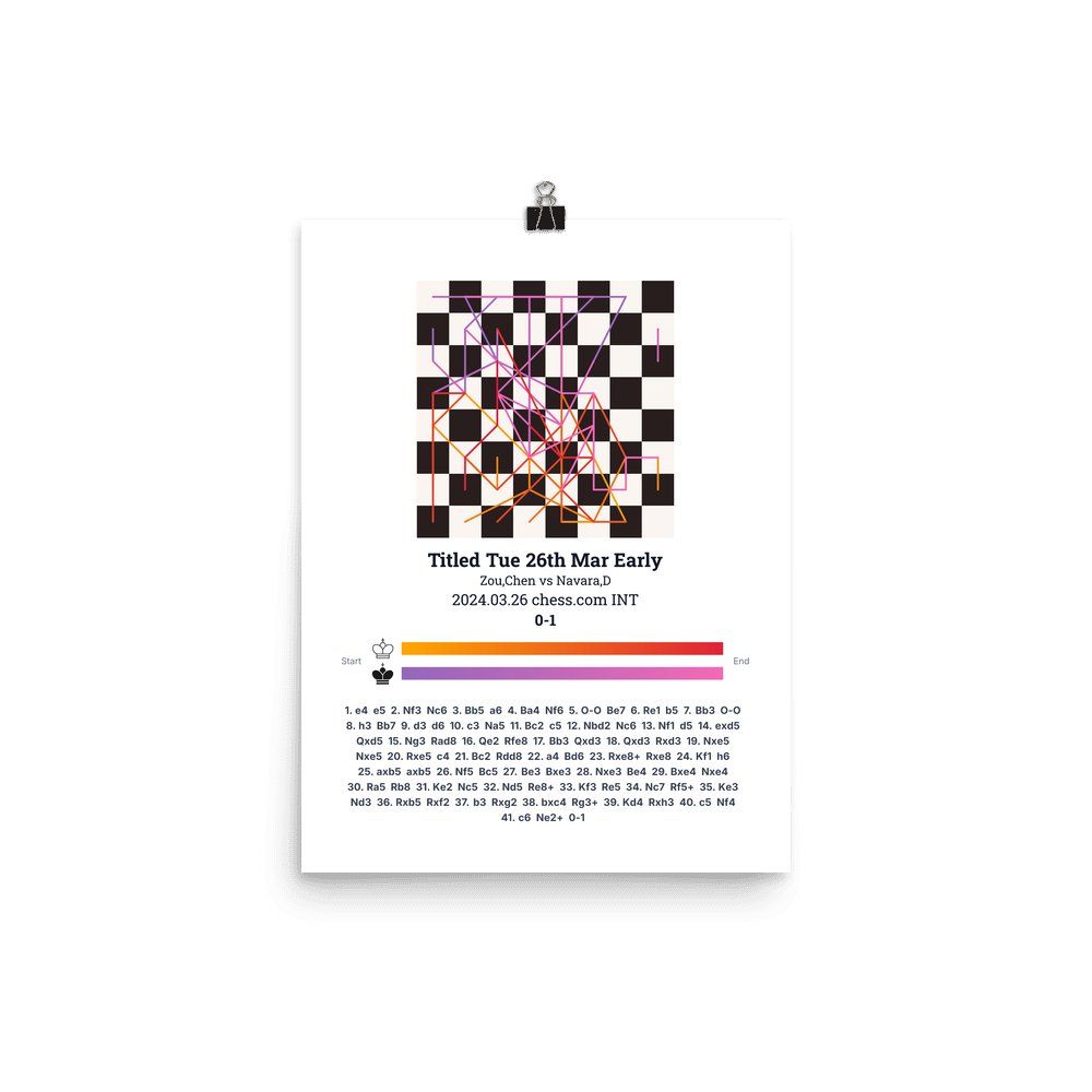 Museum-quality poster on thick, durable matte paper. A sharp, clean look for any chess visualisation.