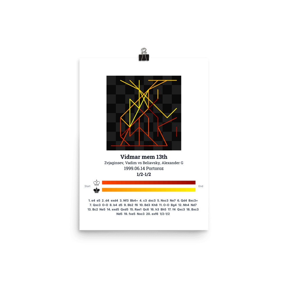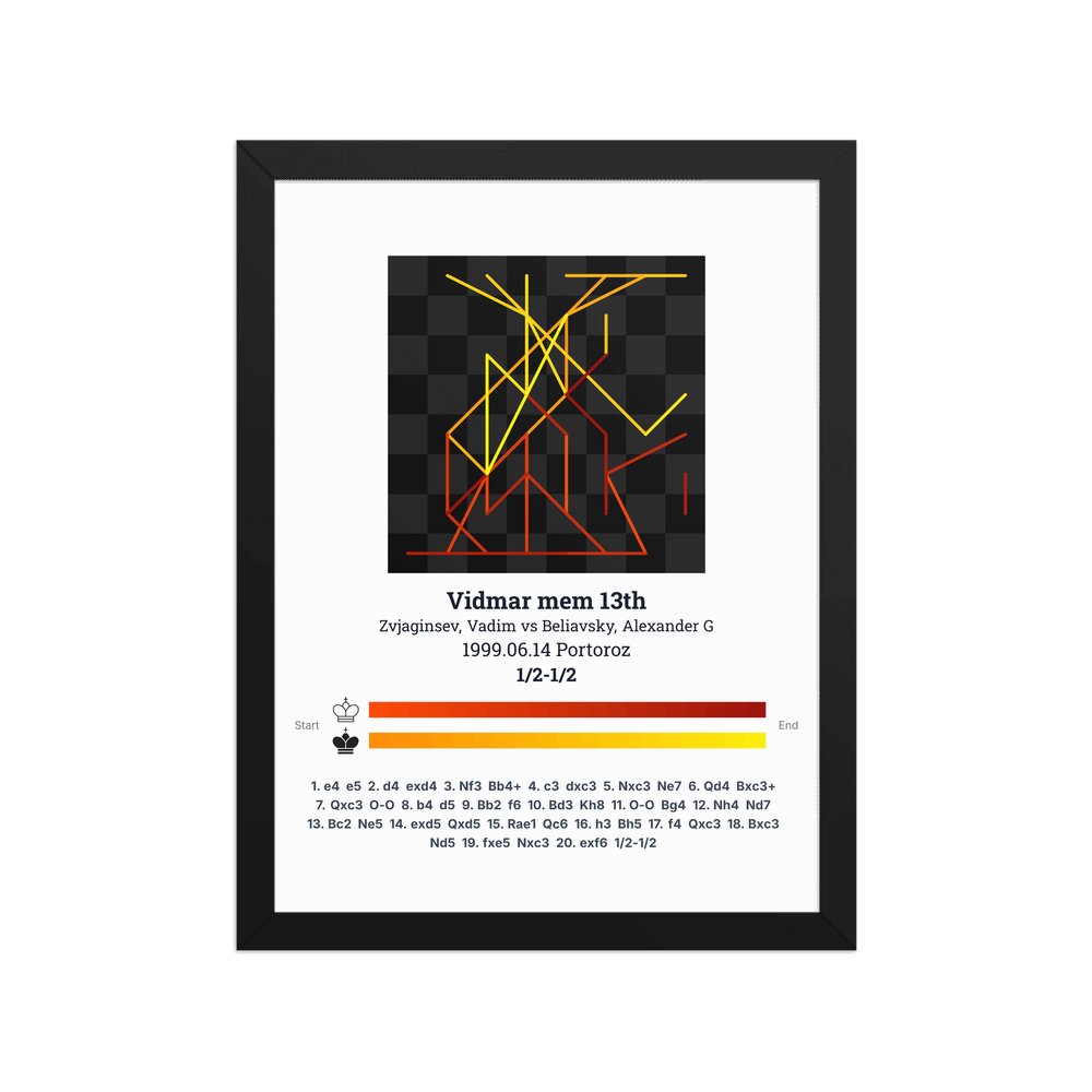 Museum-quality poster on thick, durable matte paper. A sharp, clean look for any chess visualisation.