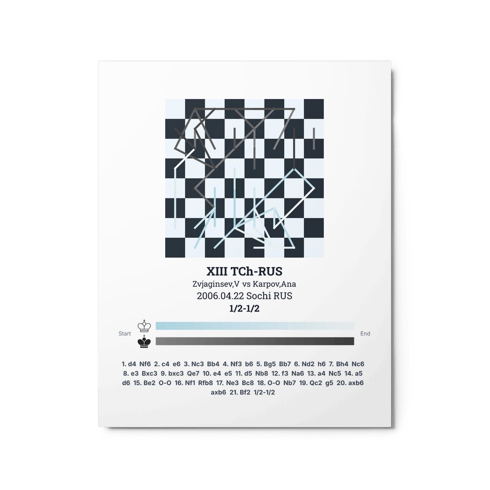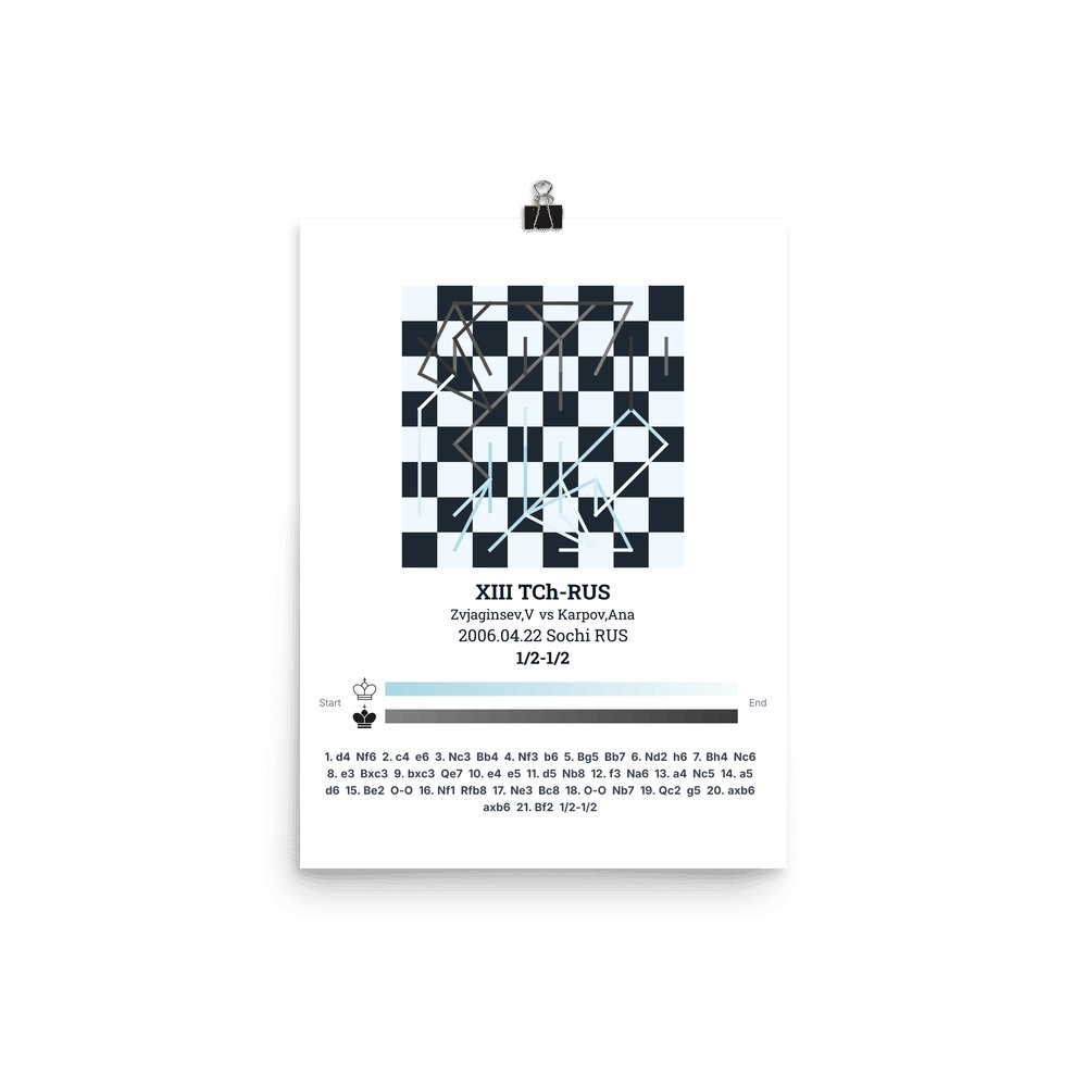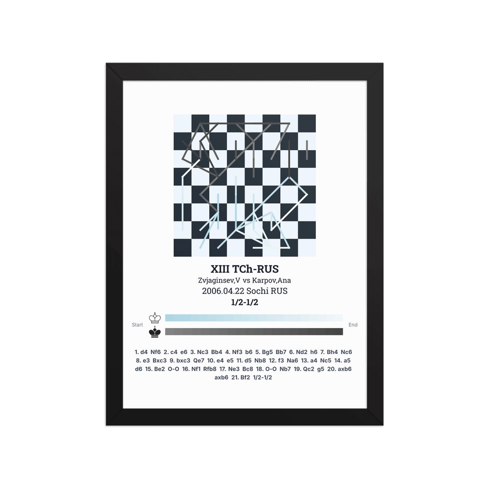 Museum-quality poster on thick, durable matte paper. A sharp, clean look for any chess visualisation.