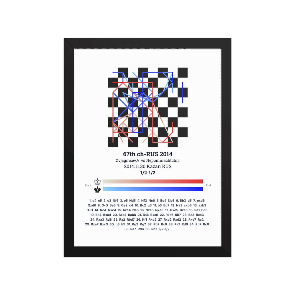 Museum-quality poster on thick, durable matte paper. A sharp, clean look for any chess visualisation.